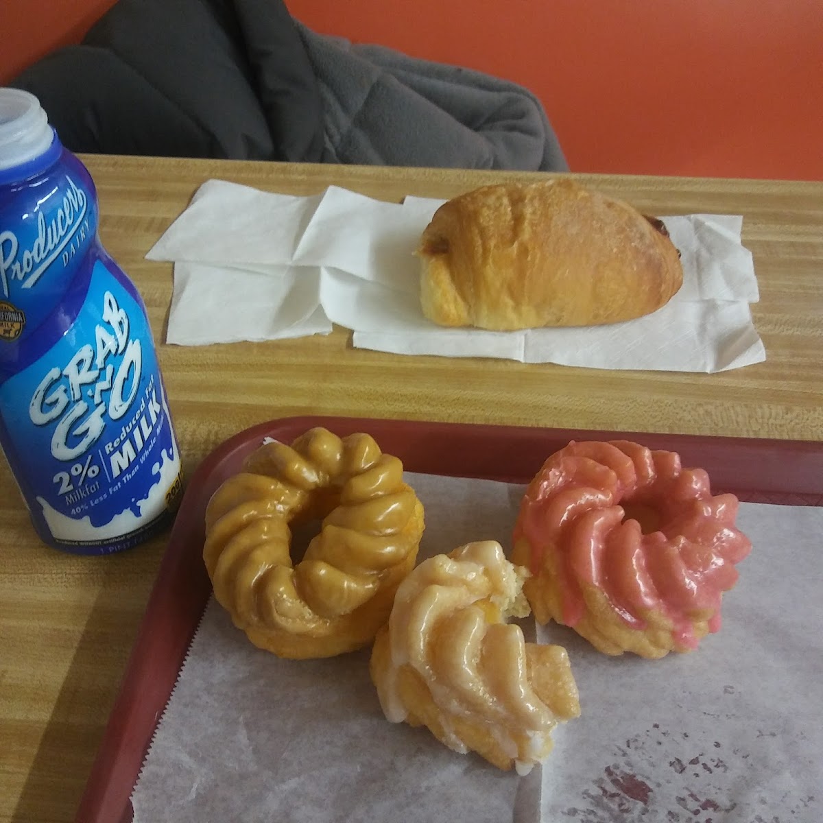 Came in Saturday morning and all the donuts looked beautifully fresh. Got a chocolate bar donut that the staff generously filled with (I think) tasty in house custard that wasn’t overly sweet, with a smooth creamy texture, an iced latte that did the job, an apple fritter donut that could use justt a little more apple on the inside and was a bit crunchy from being fried a little too long but was still absolutely delicious flavor wise + pillowy soft melt in your mouth on the inside, and a thick glazed donut with a perfectly flavored glaze and a light but chewy crumb. A little more chew and body to the glazed donut than I’m used to. Staff were super friendly and I loved the interior. Very clean and calm space.